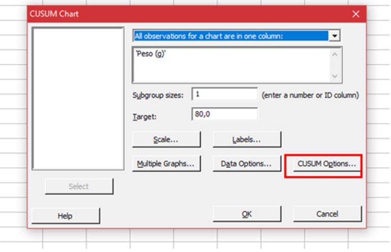 Seleccionar las opciones de CUSUM
